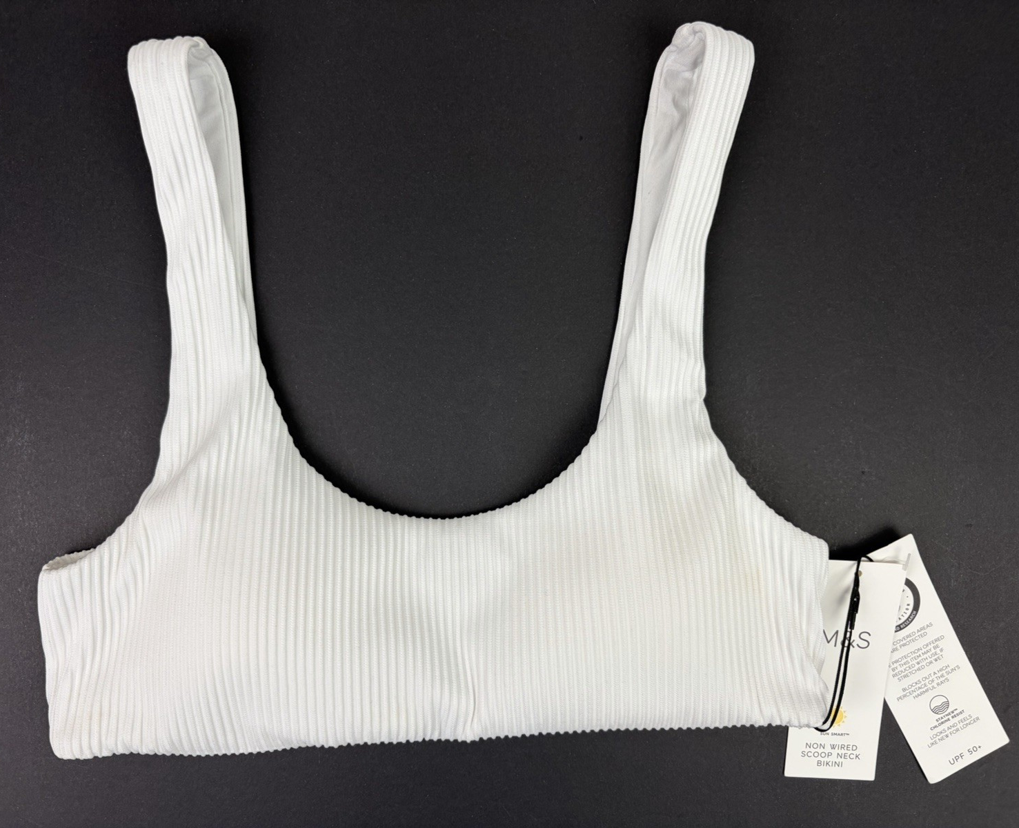 UK 10 - Marks & Spencer Ribbed Scoop Neck Bikini Top - Soft White BNWT