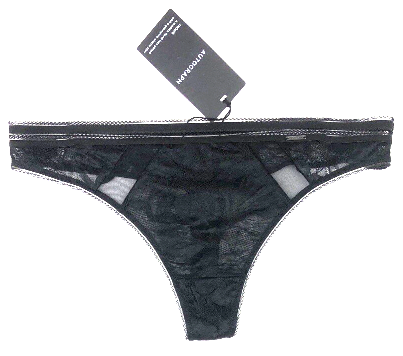 UK 14 Marks & Spencer Autograph Sheer Mesh Thong BLACK BNWT