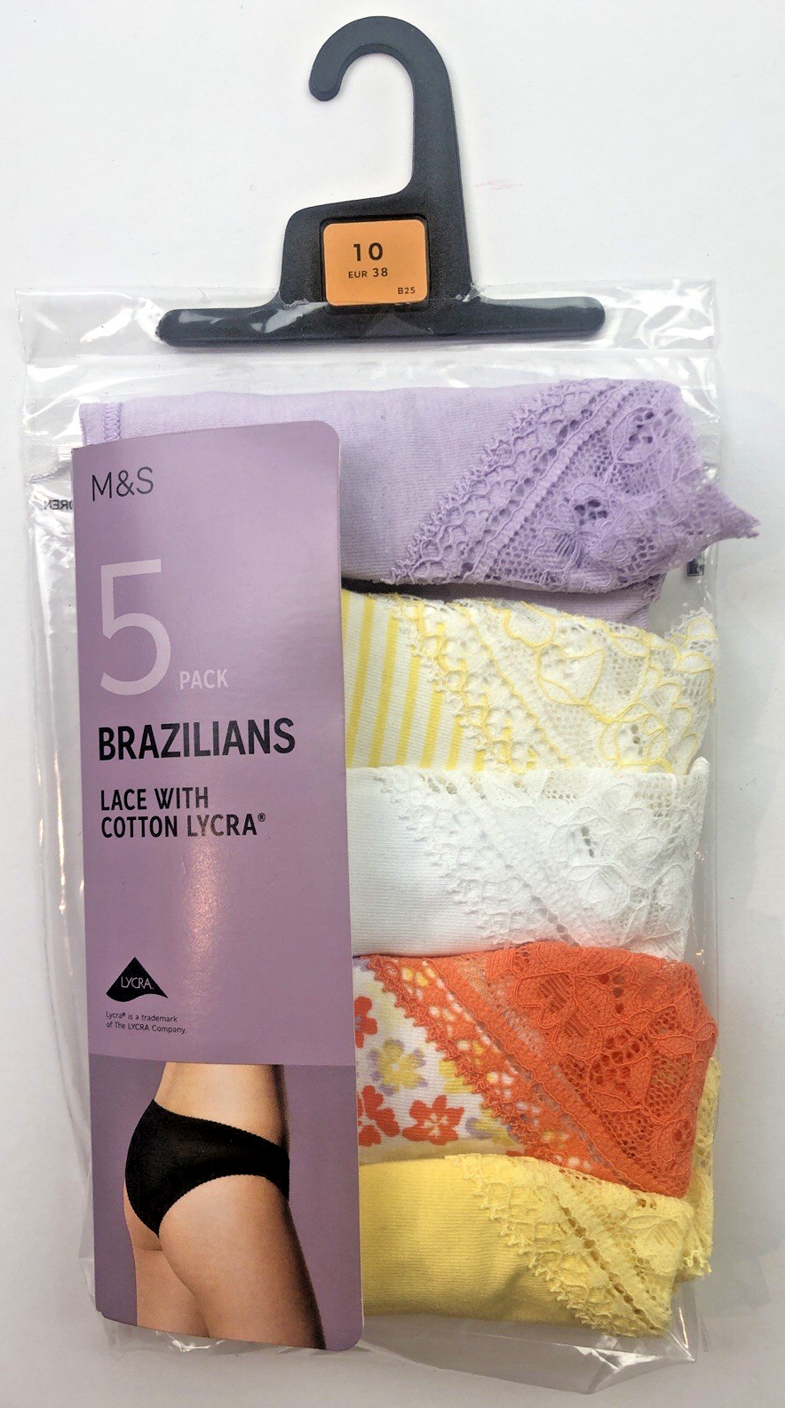 UK 10 Marks & Spencer 5 Pack Lace & Cotton Brazilian Knickers Sunshine Mix BNWT