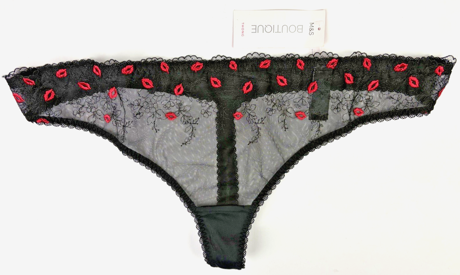 Marks & Spencer Boutique Red Lips Kalina Thong UK 20 BLACK BNWT