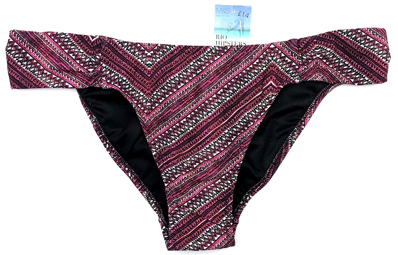 Marks & Spencer Rio Hipster Bikini Bottoms UK 8 Pink / Black Mix BNWT