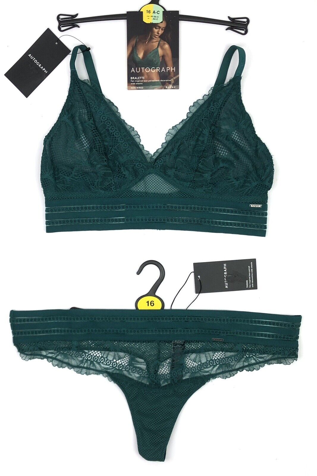 UK 16 Marks & Spencer Autograph Bralette Bra UK 16 A - C & Thong UK 16 BNWT