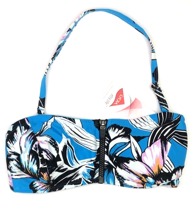 Marks & Spencer Zip Floral Padded Bandeau Bikini Top UK 10 Turquoise Blue BNWT