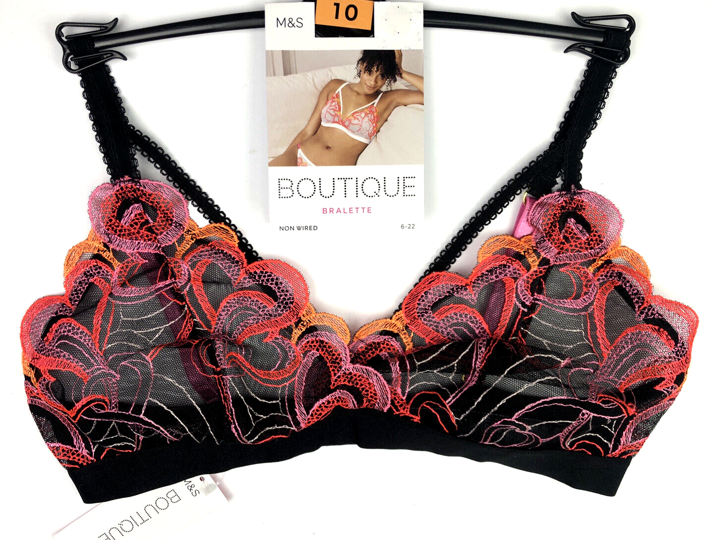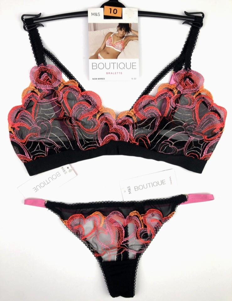 UK 10 Marks & Spencer Boutique Bralette & Thong Set BLACK BNWT