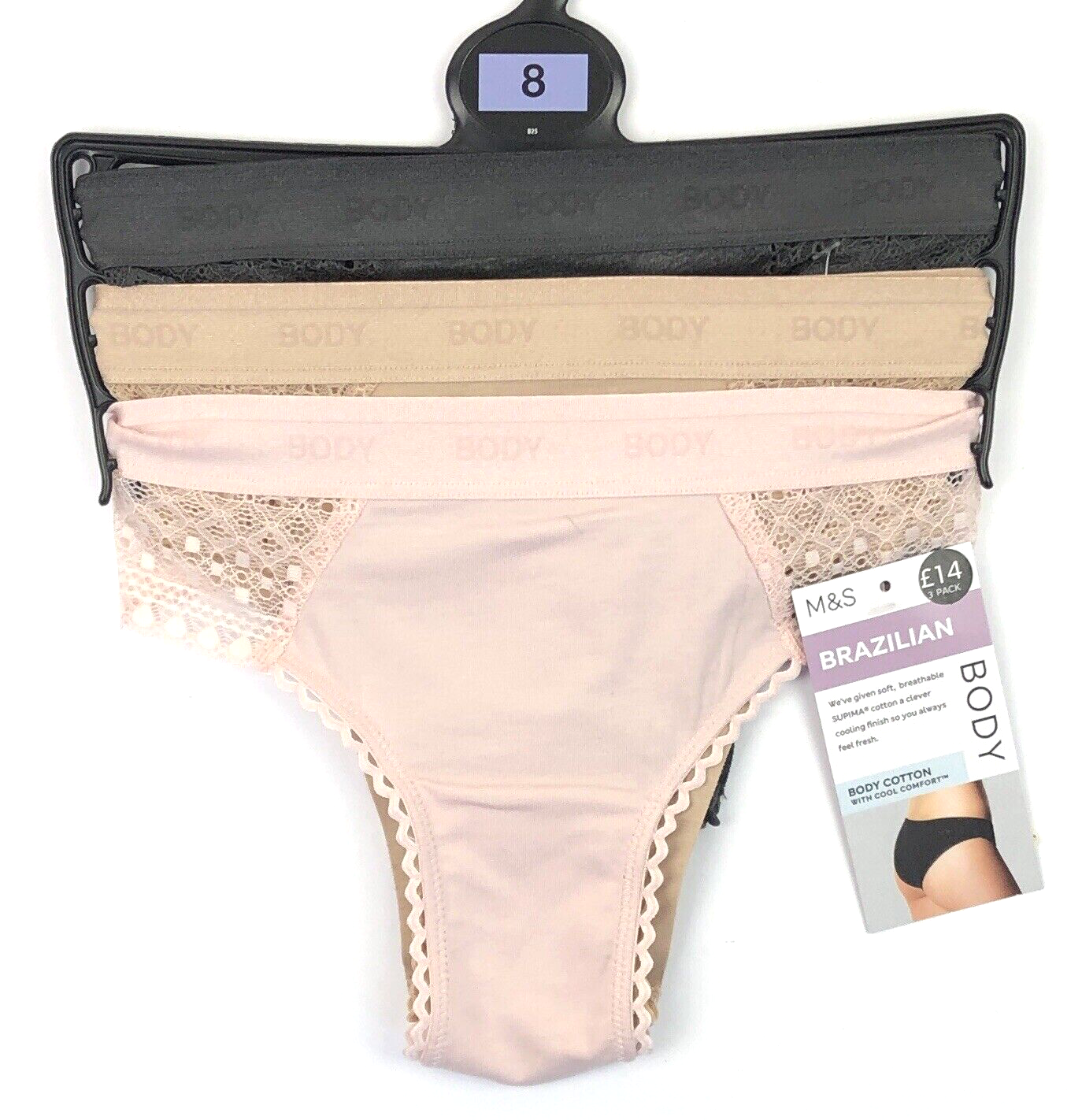 Marks & Spencer 3 Pack Body Cool Comfort Cotton Brazilian Knickers UK 8 BNWT