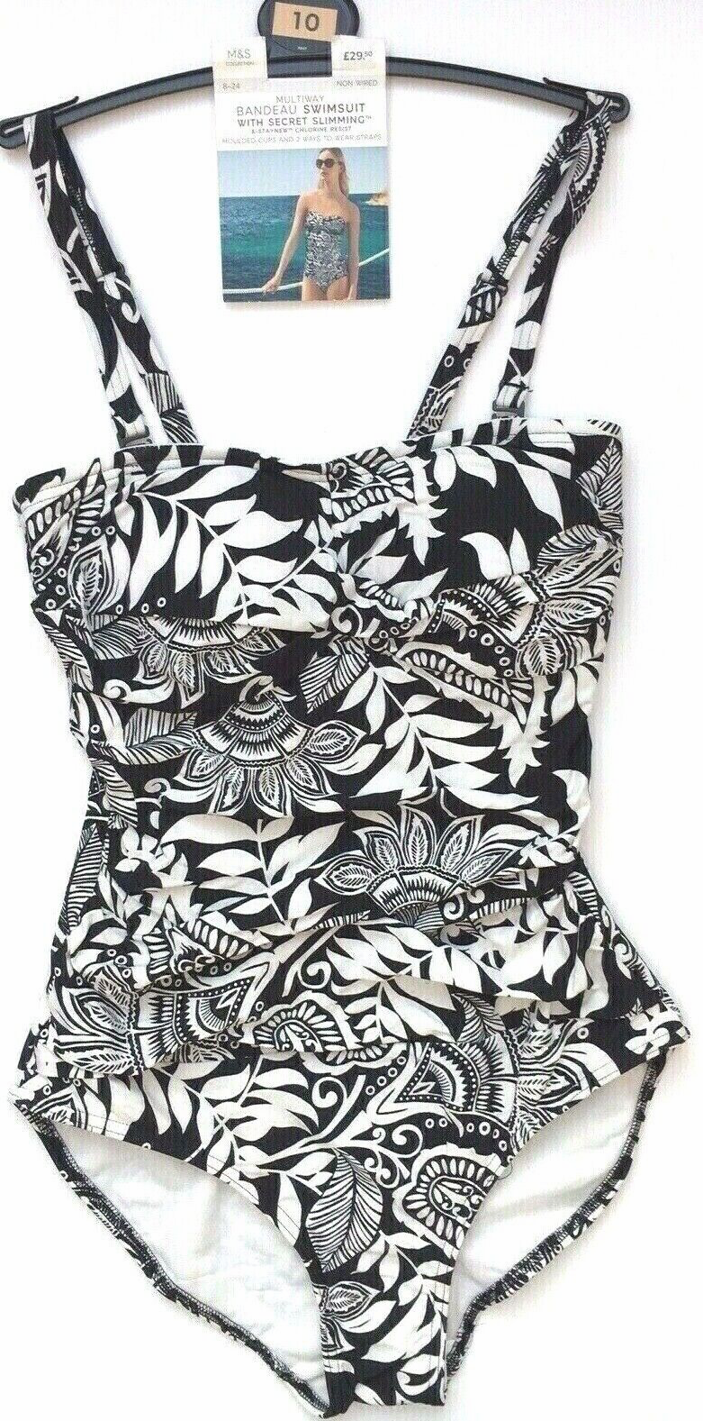 Marks & Spencer Multiway Bandeau Swimsuit Secret Slimming UK 10 BNWT