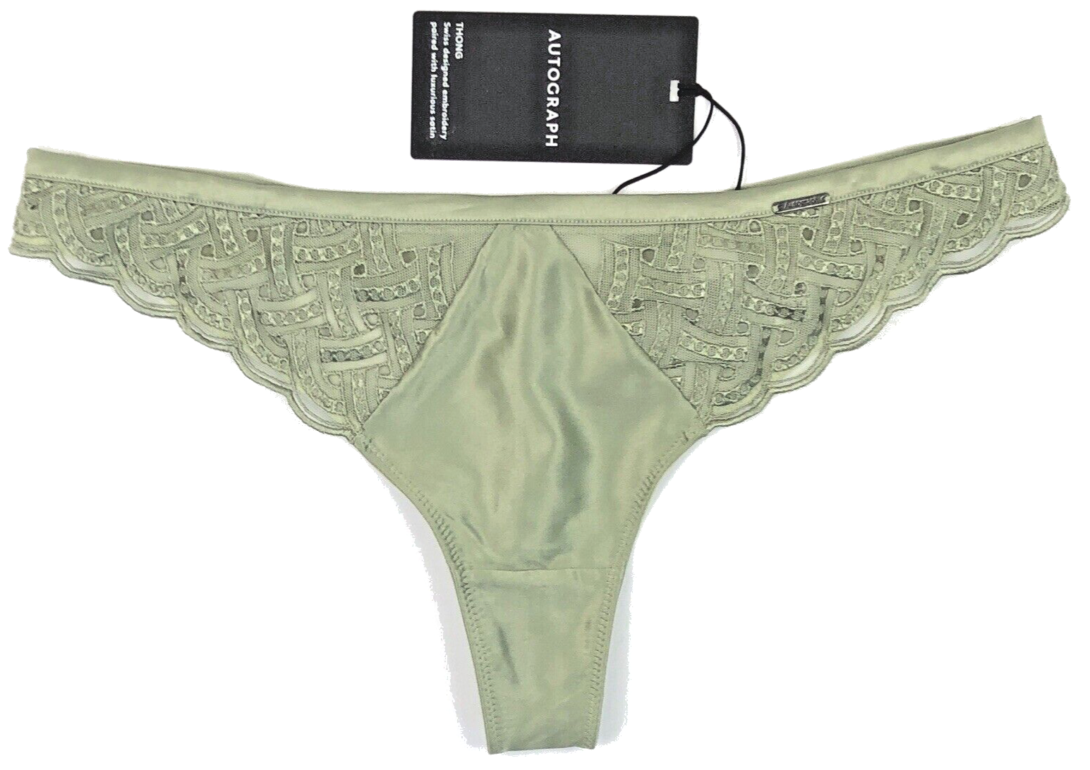 Marks & Spencer Autograph Belize Embroidered Thong UK 10 Olive Green BNWT