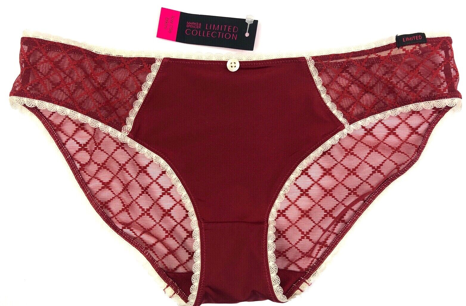 UK 10 Marks & Spencer Limited Collection Mesh Bikini Knickers Dark Red BNWT