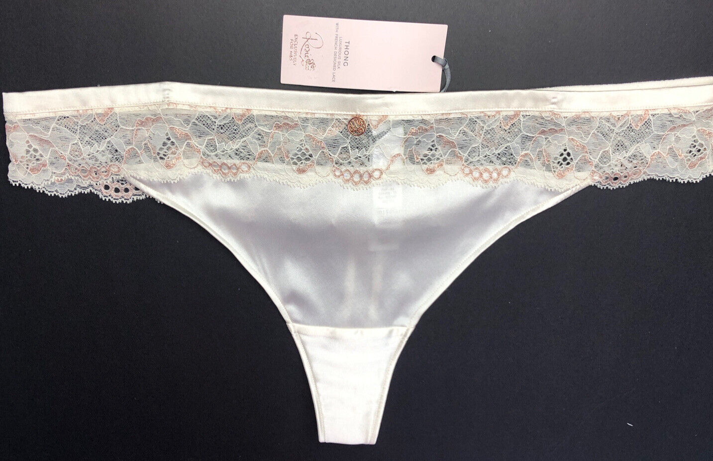 UK 16 Marks & Spencer Rosie for Autograph Luxurious Silk & Lace Thong Ivory BNWT
