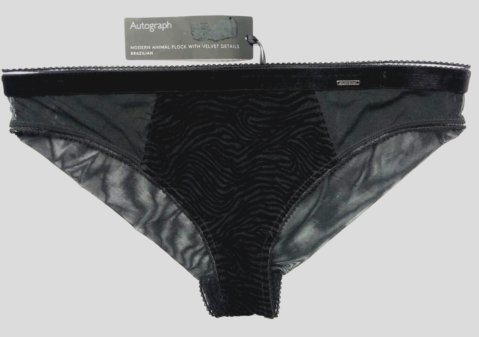 Marks & Spencer Autograph Velvet Flock Brazilian Knickers UK 10 BLACK BNWT