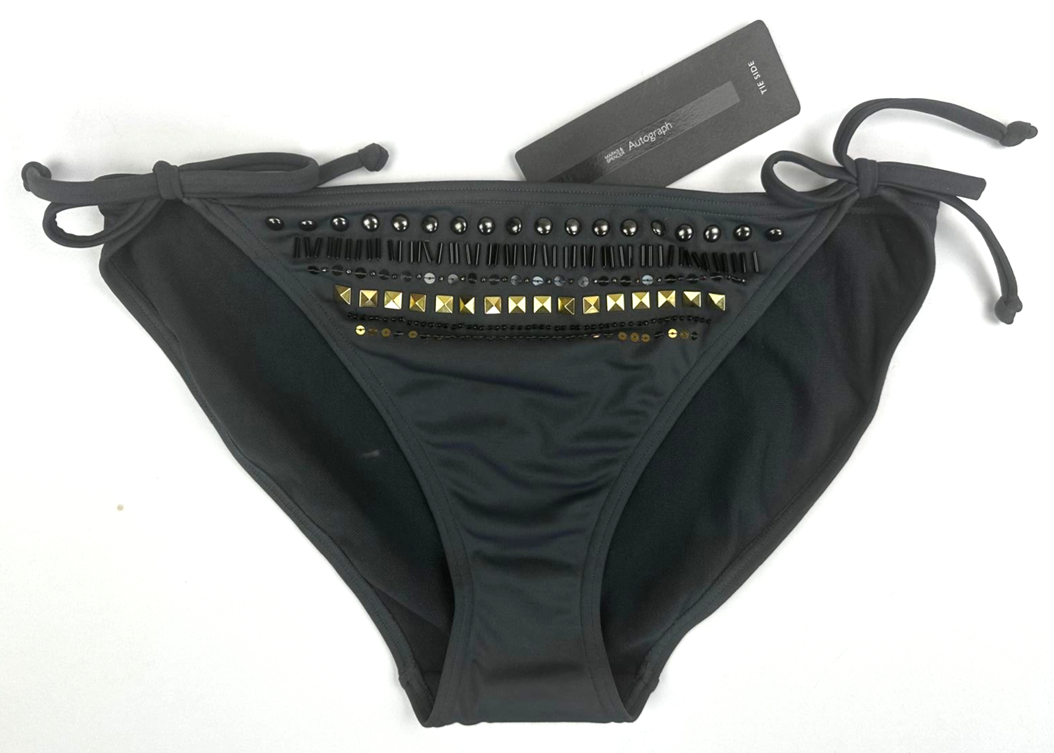 Marks & Spencer Autograph Studded & Beaded Bikini Bottoms UK 16 SOLID GREY BNWT