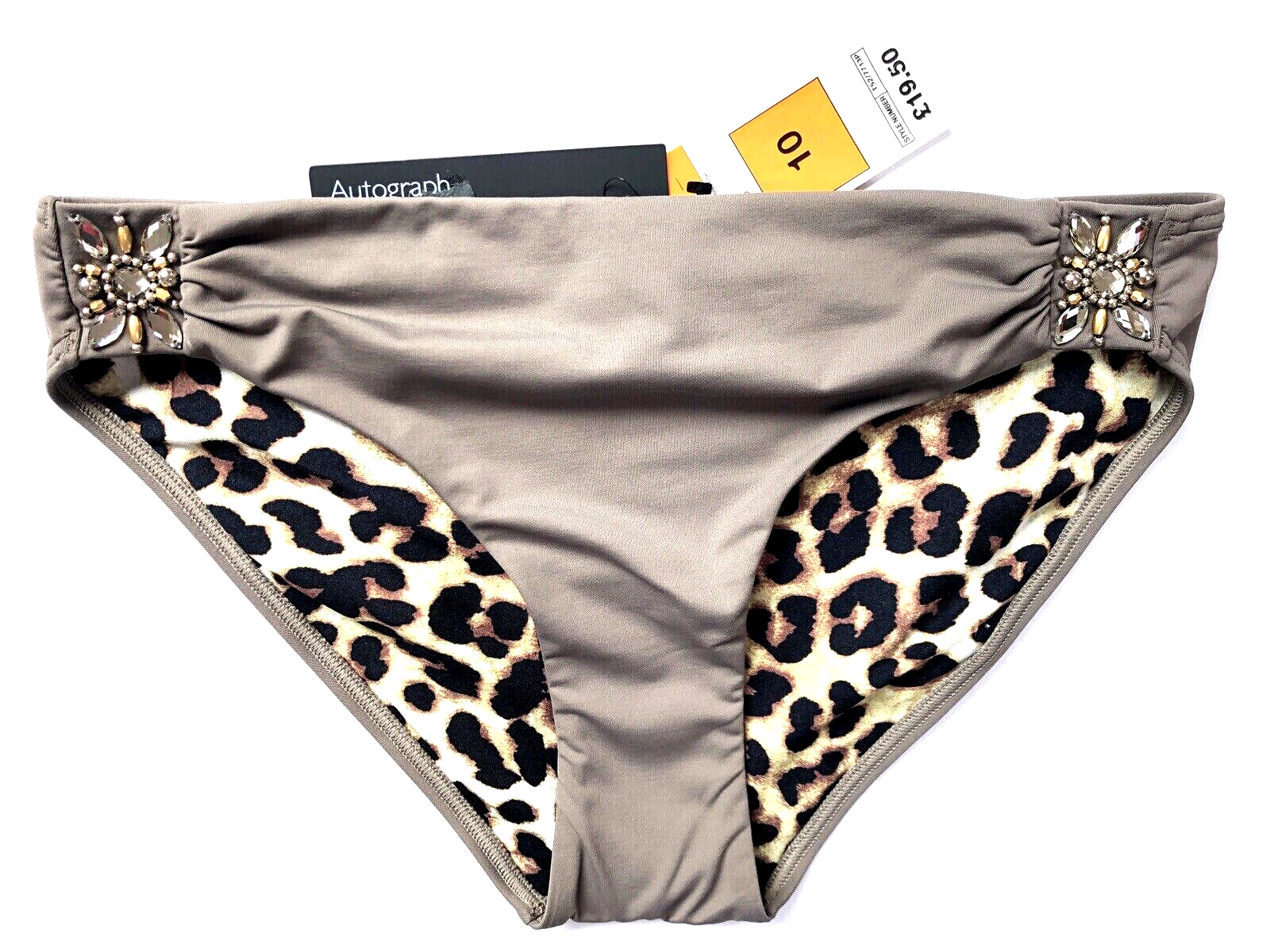 Marks & Spencer Autograph Beaded Bikini Bottoms UK 10 Taupe BNWT