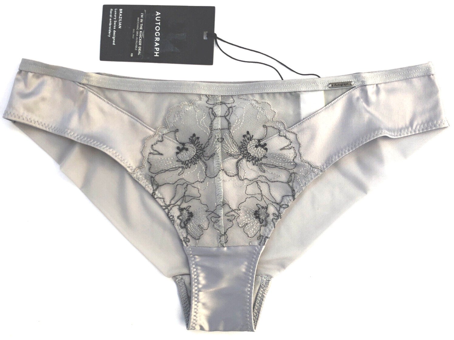 Marks & Spencer Autograph Allure Embroidered Brazilian Knickers UK 6 SILVER BNWT