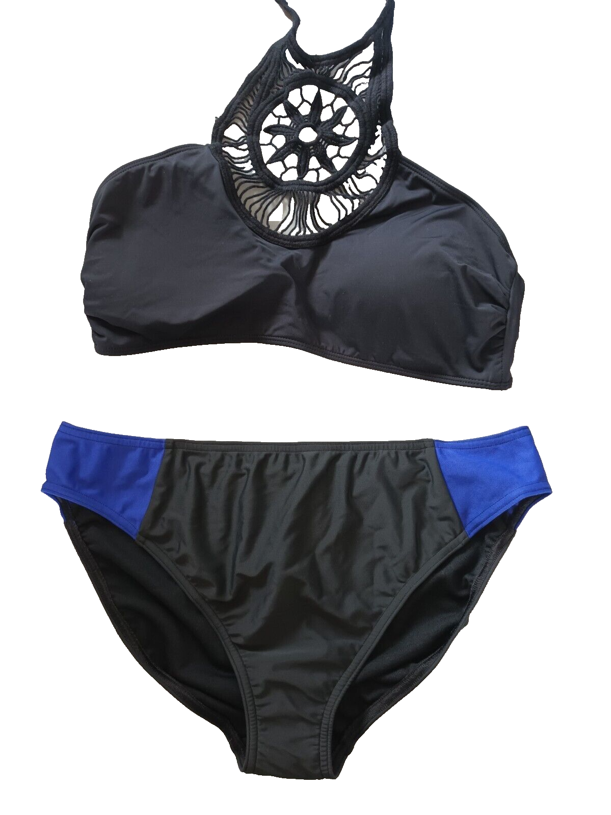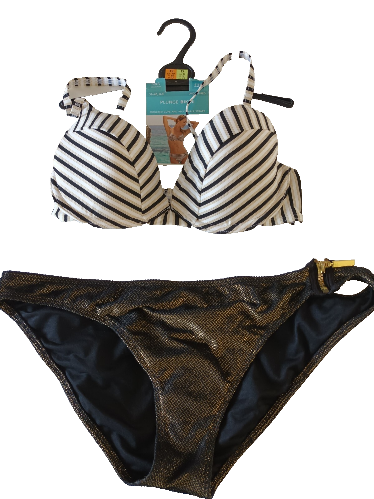 Marks & Spencer/River Island UK 32D Black Mix U/W Padded Plunge Bikini Set