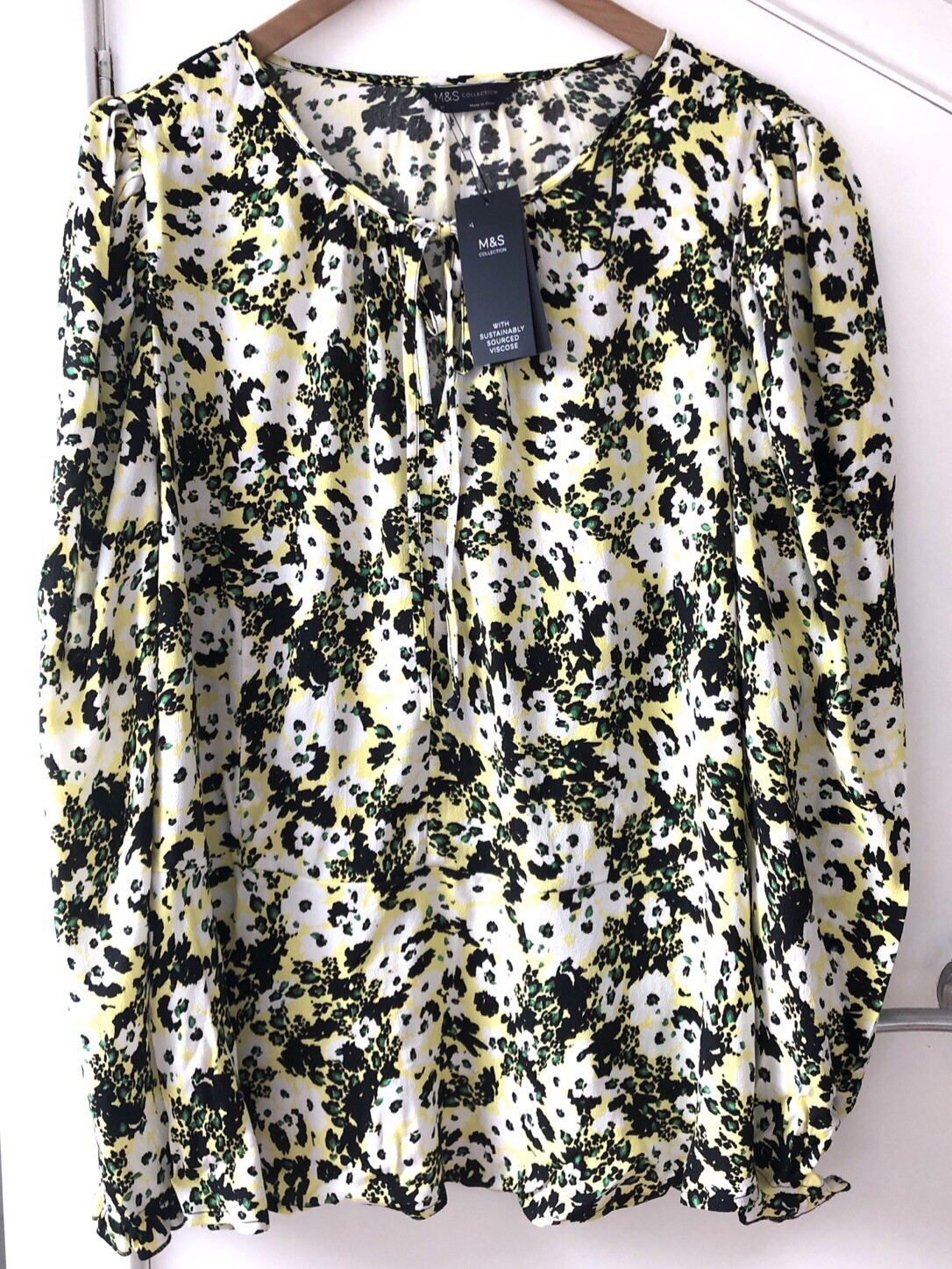 Marks & Spencer Floral Neck Tie Long Sleeved Top UK 20 White Mix BNWT