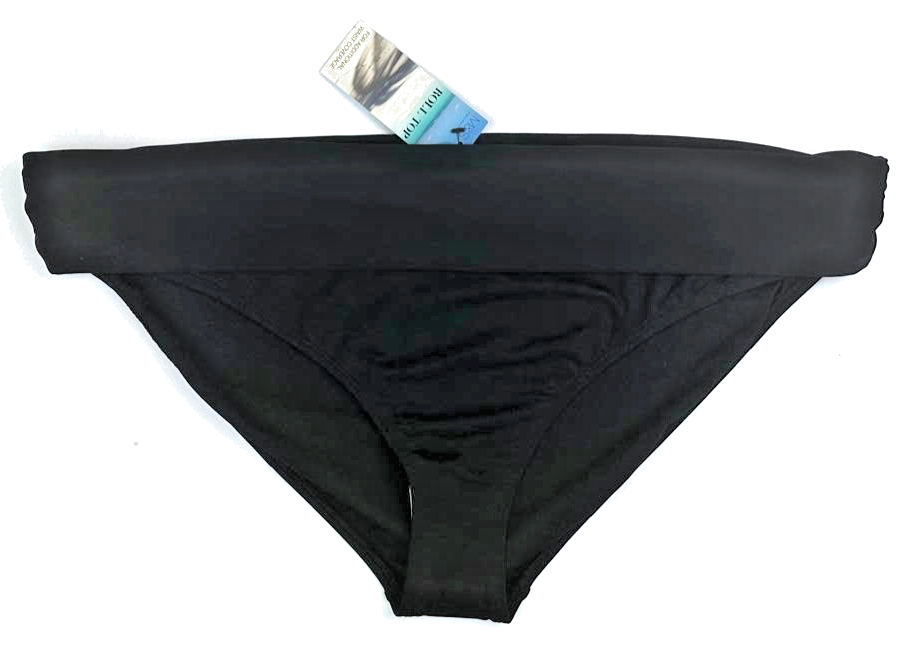UK 16 Marks & Spencer Roll Top Hipster Bikini Bottoms SOLID PLAIN BLACK BNWT
