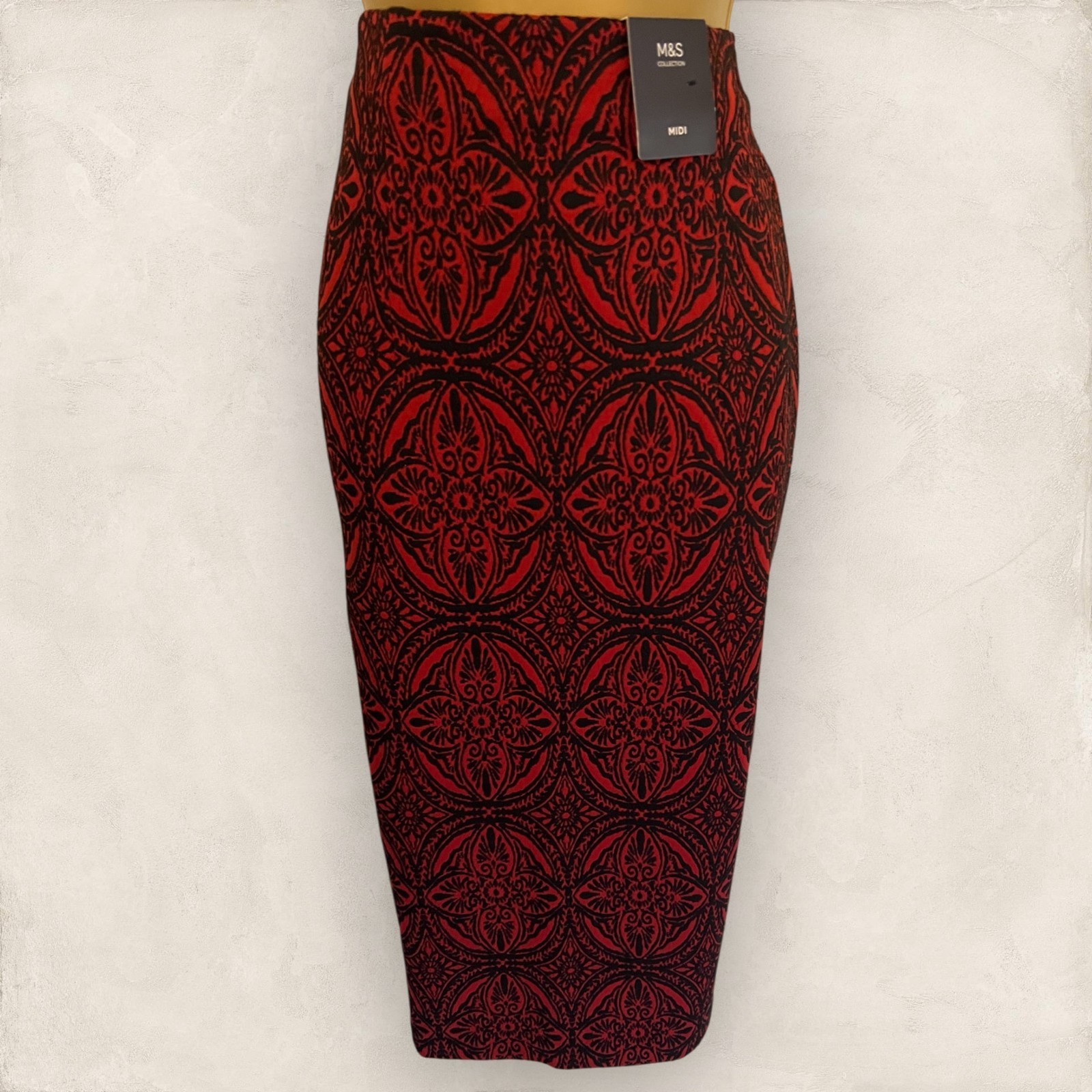 Marks & Spencer Womens Red Black Geometric Print Pencil Skirt UK 8 NWT
