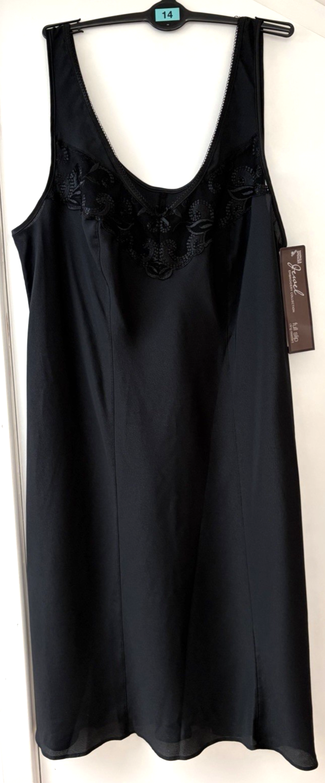 UK 14 Marks & Spencer Embroidered Cling Resist Full Slip Length 19" Black BNWT