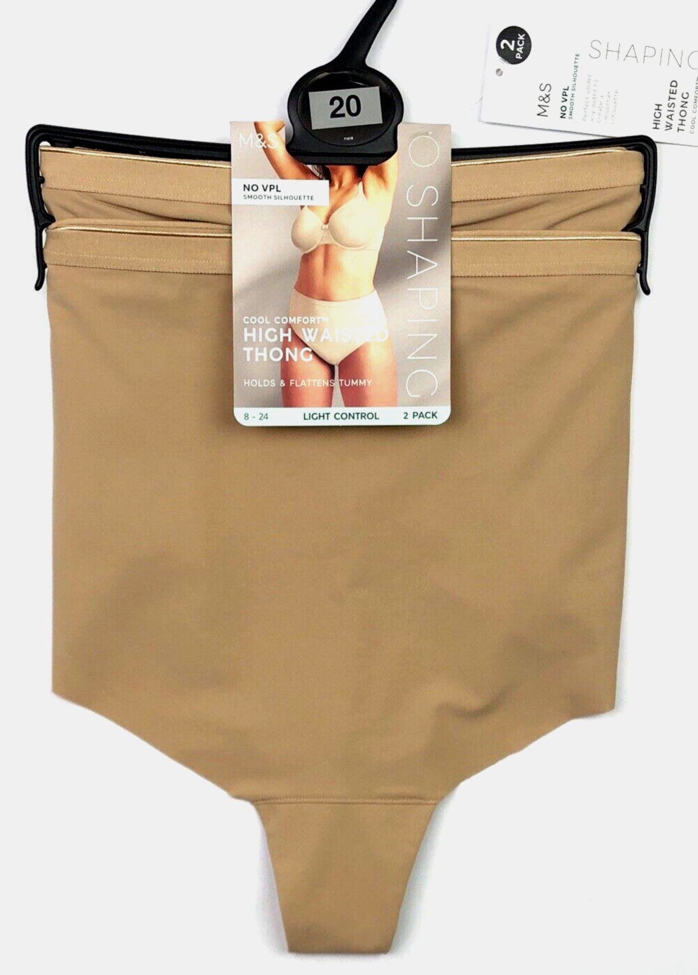 UK 20 Marks & Spencer 2 Pack Light Control High Waisted Shaping Thong Nude BNWT