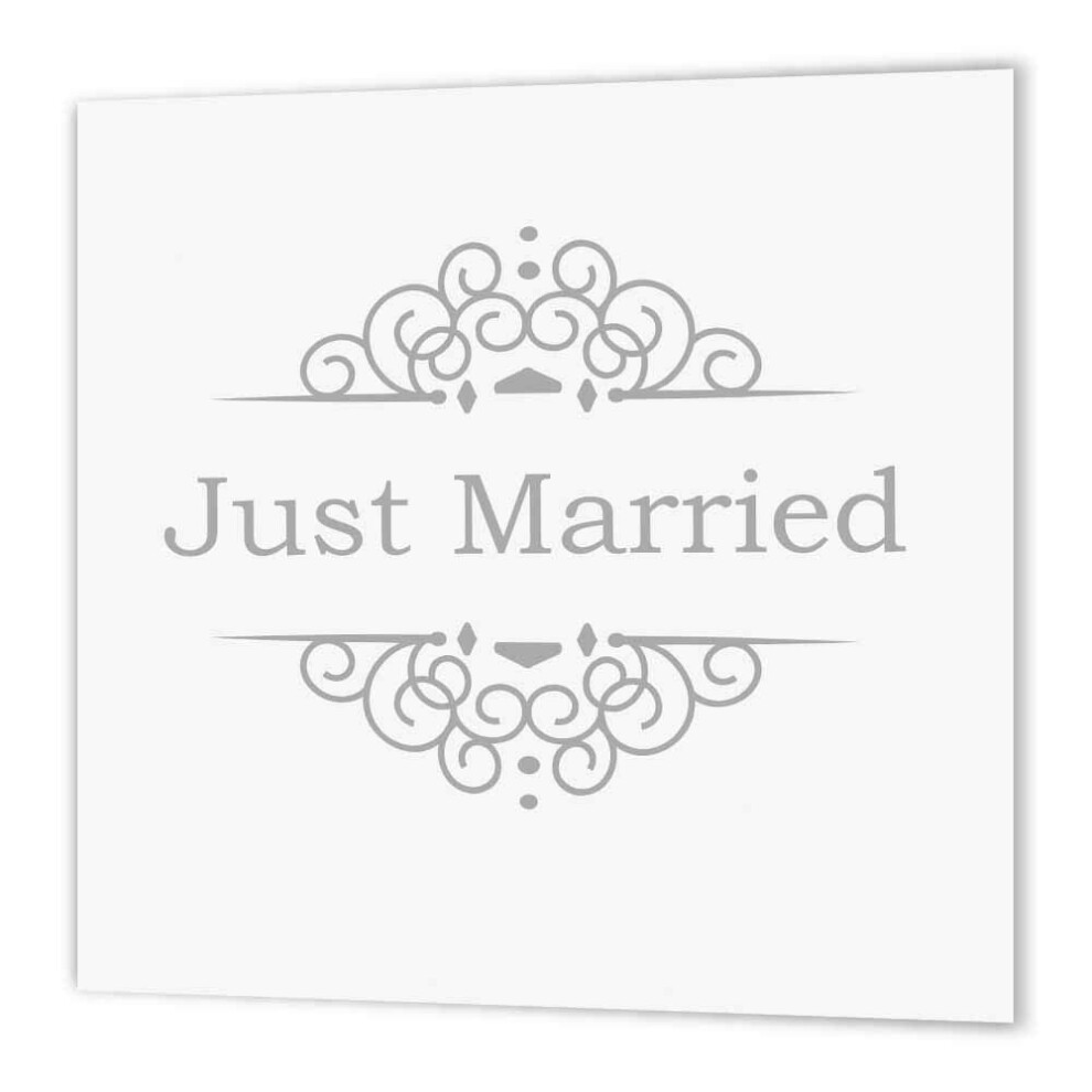 3dRose ht_151589_1 Just Married in Silver with Fancy Swirls Grey Gray Wedding Marriage Iron on Heat Transfer for White Material 8 by 8-Inch