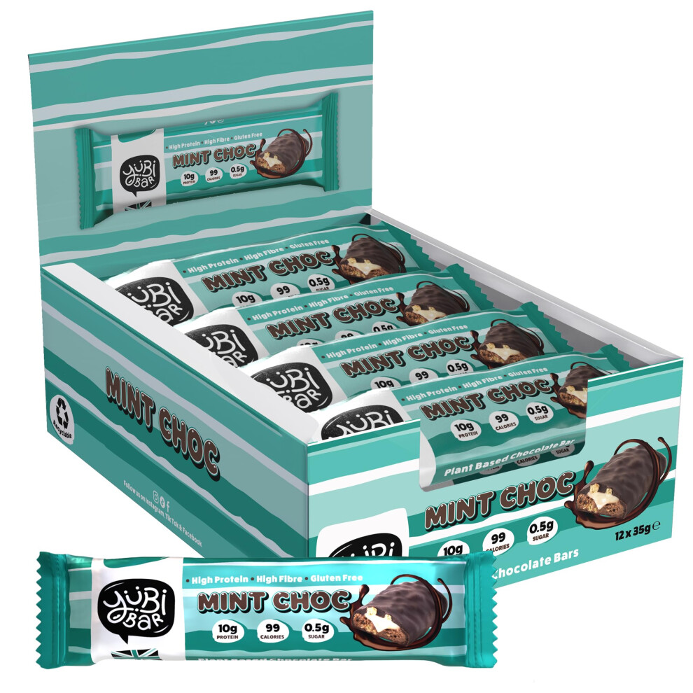 Yubi Mint Choc - 12 Pack - Protein Bars - 99 Calories, High Protein, High Fibre, Low Sugar, Gluten Free and Dairy Free - Healthy