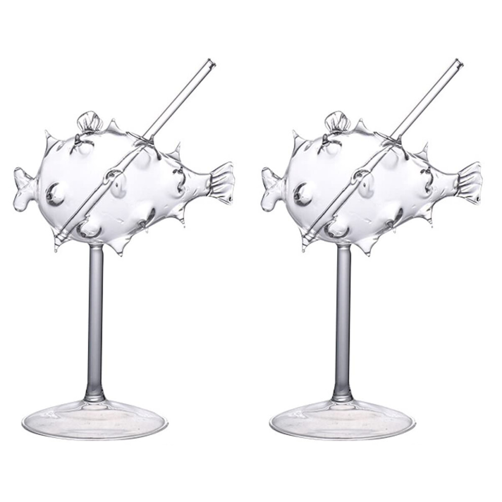 Set of 2 Fish Glasses Fish-Shaped Cocktail Goblets for Wine Margarita Martini Crystal Drinking Cups