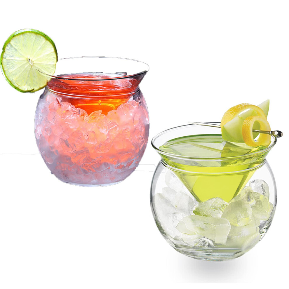 Martini Stemless Glasses with Cooler Set of 2 Cocktail Glasses 266ml Large Ball Base Martini Glasses for Home Bar Drinking Glasses Gift Set