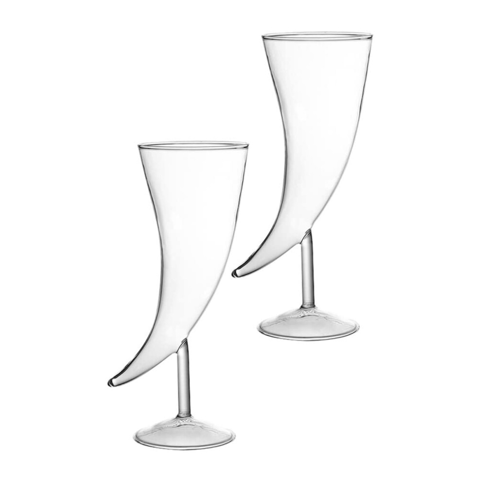 Wedding Accessories Ox Horn Cocktail Glasses Set - Unique Drinking Glasses for Martini Mojito Drinks - Bar Party Decor