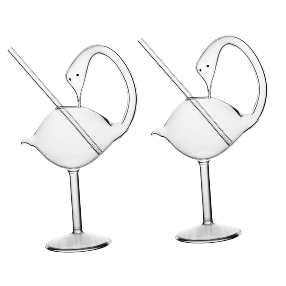 INFTYLE Cocktail Glass - Set of 2 Swan Glass 6oz Creative Drinking Glasses Wedding Gift for Juice, Martini, tequila, margarita