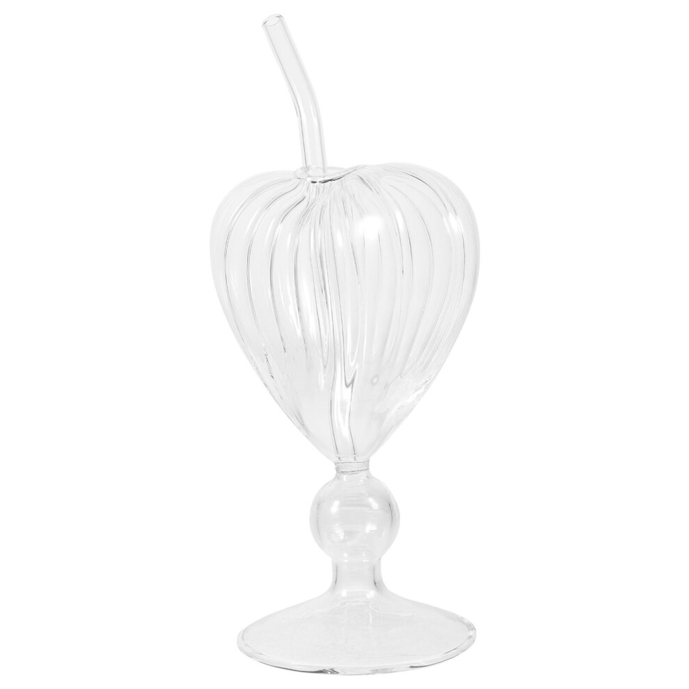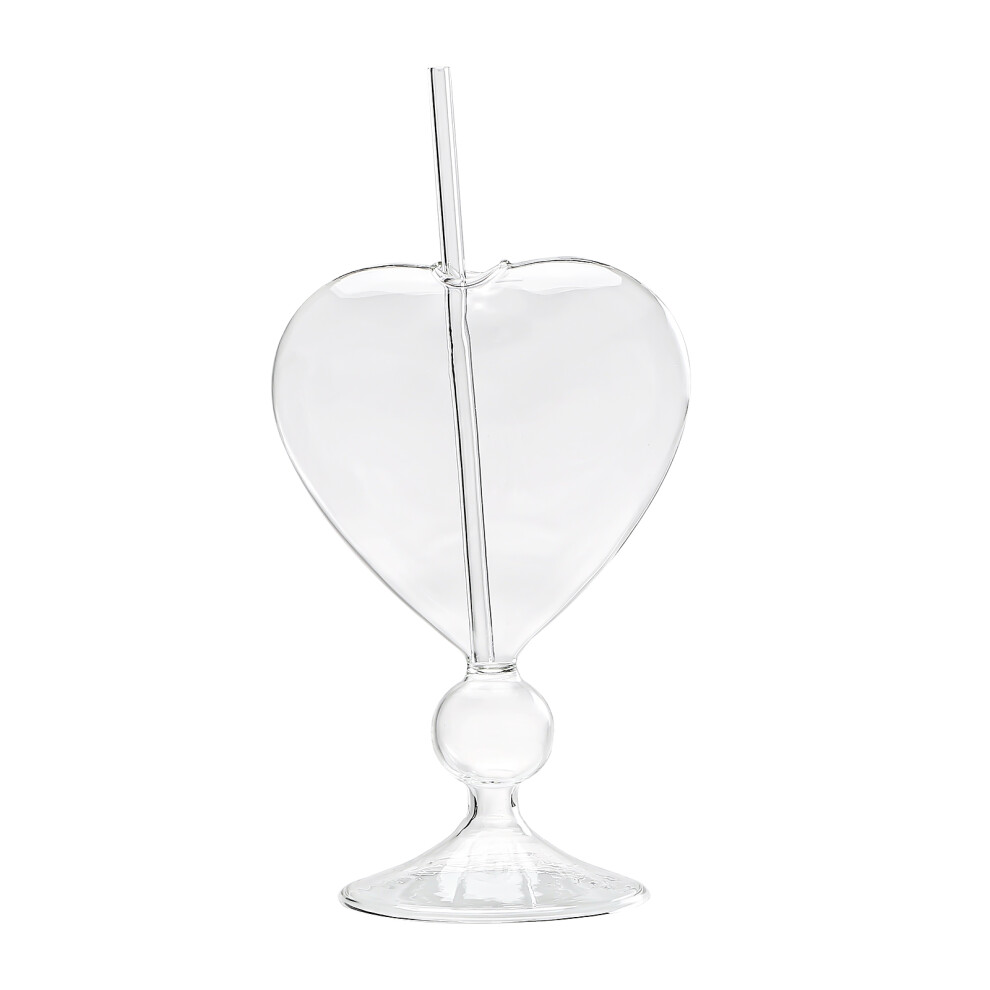 Heart Shaped Cocktail Glass, Creative Martini Glasses Clear Glass Goblet with Glass Straw, Reusable and Durable Drinking Cup for Parties Wine Juice Co