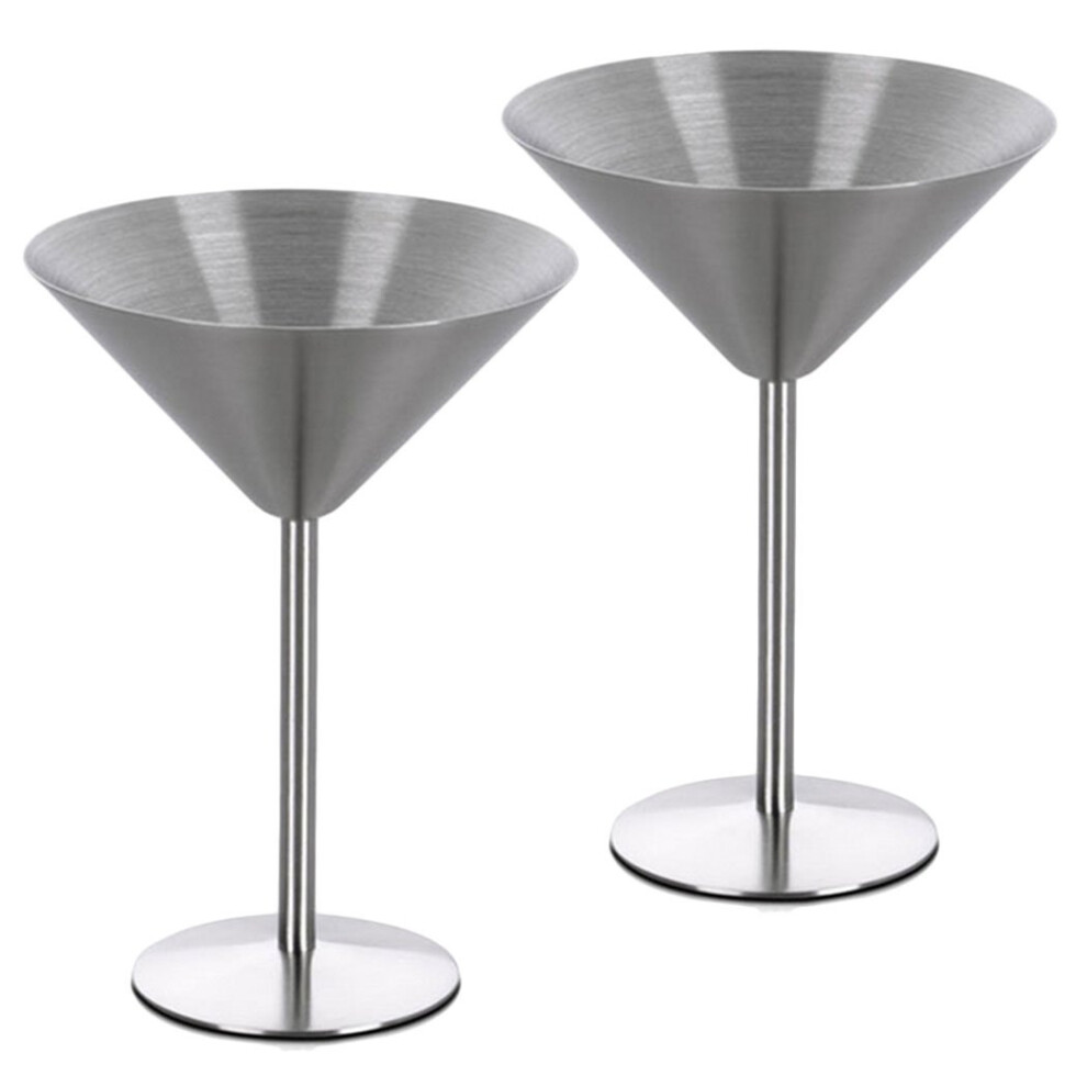 Gorgeous Vintage Stainless Steel Martini Drinking Cup Cocktail Glass Goblet Champagne Glasses Bar Glasses, 10 oz (Pack of 2)