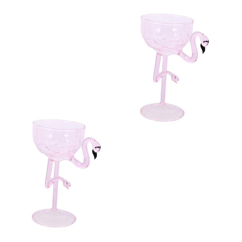 Flamingo Liqueur Glass Cocktail Set of 2, Martini Glasses, Margarita Cups, White Wine Drinking Glasses, Unique Design