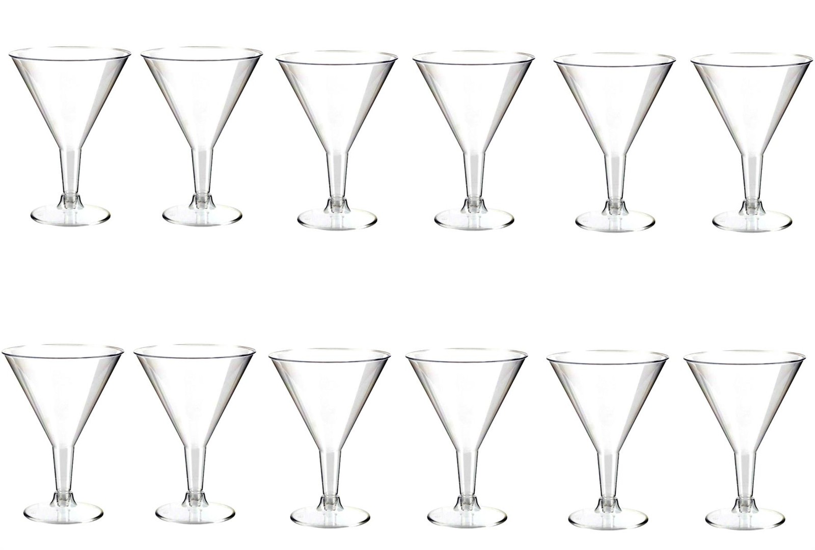 12 x Plastic Martini Glasses Clear Cocktail Drinking Party Glass 200ml 20cl