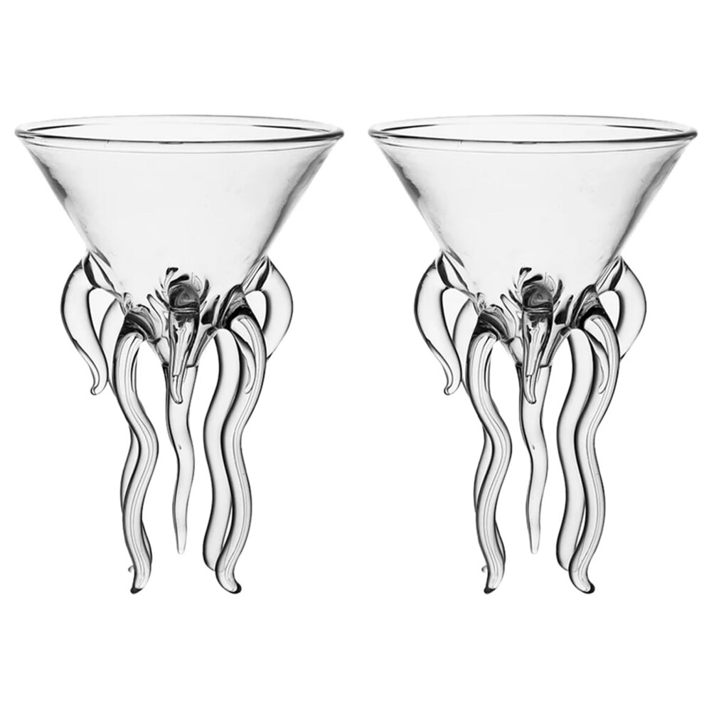 Drinkware Unique Glasses Set of 2 Octopus Martini Cocktail Glass Drinking Vessels Martini Clear Glass Cup Bar Mug Margarita Glass Cup Glass