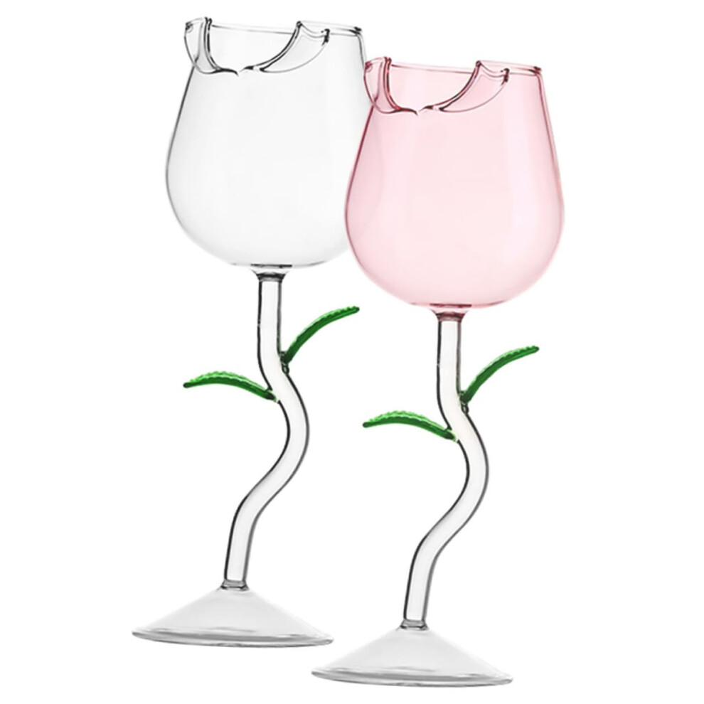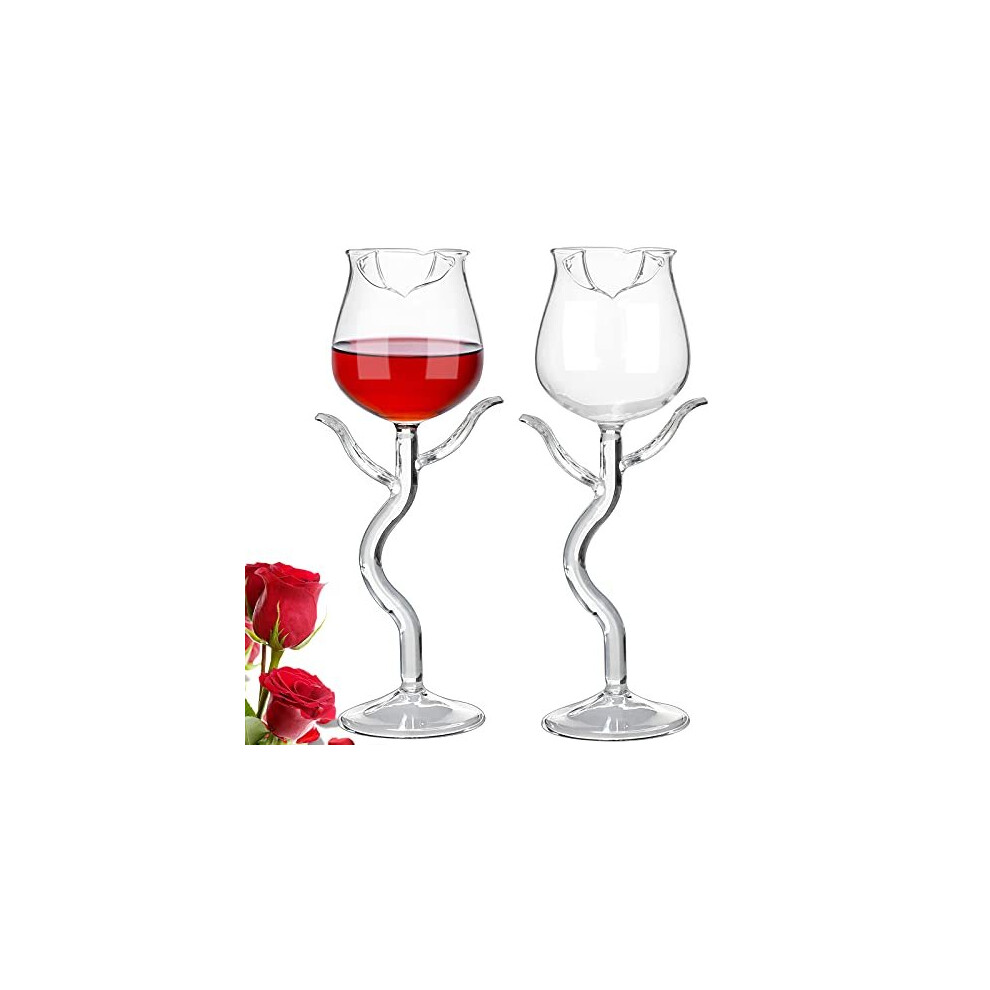 [Gift Set] Rose Wine Glasses Set of 2 Rose Shape Wine Glasses 160ml Romantic Flower Cocktail Martini Glass Clear Goblet Drinking Cups for Party