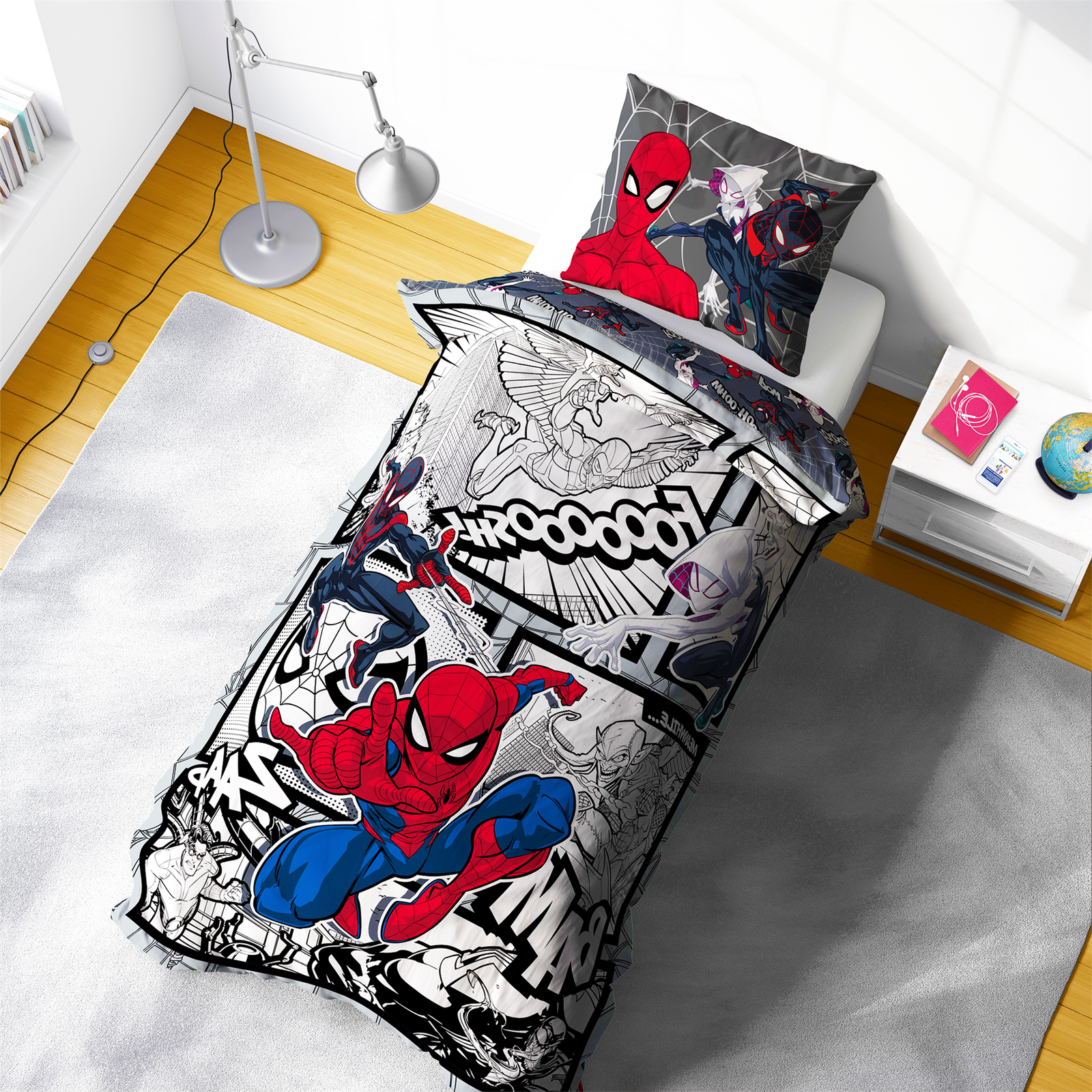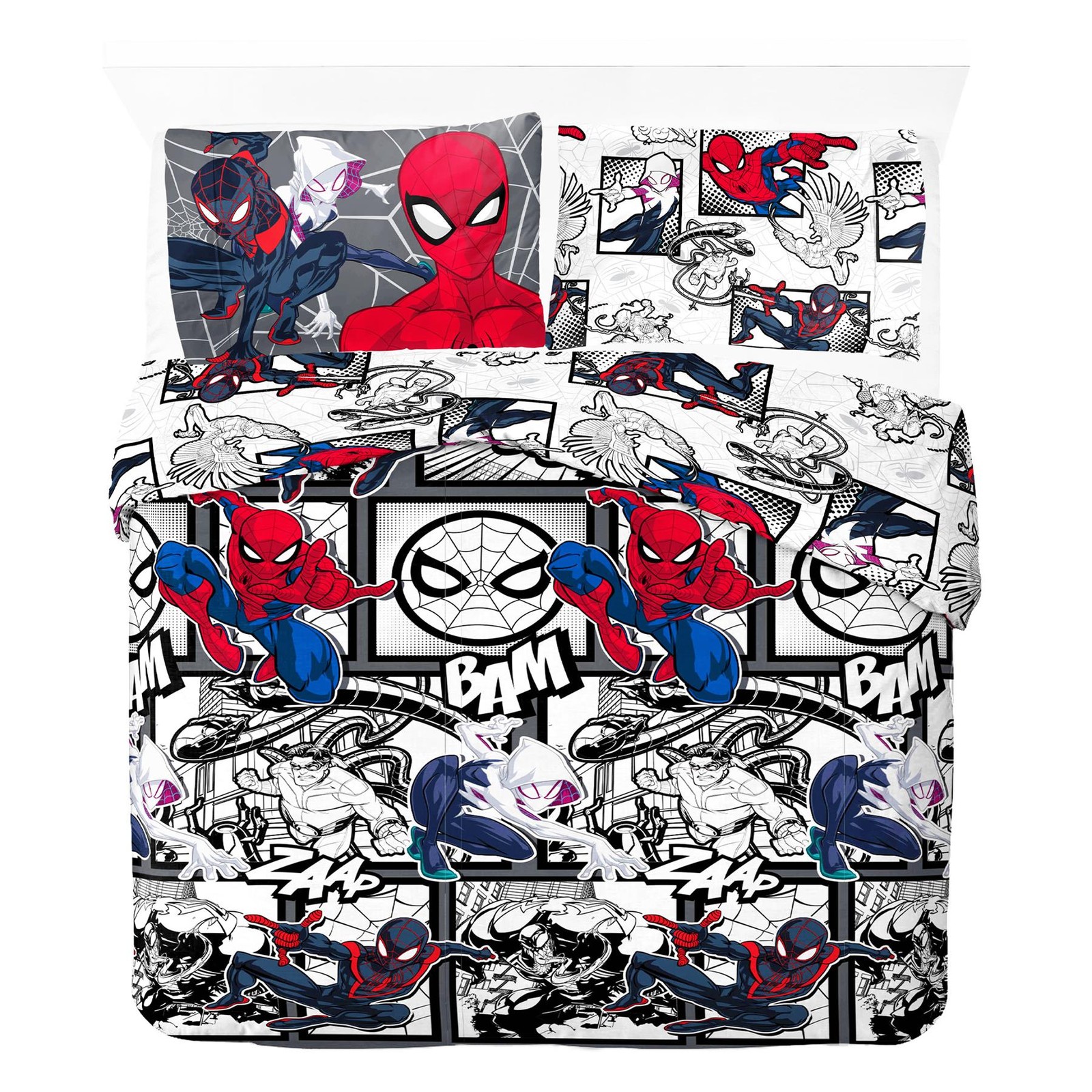 Marvel Spider-Verse Double Duvet Cover Action Comic Strip Design Bedding Set