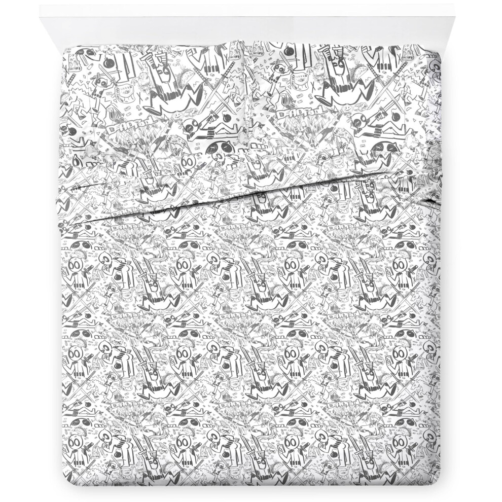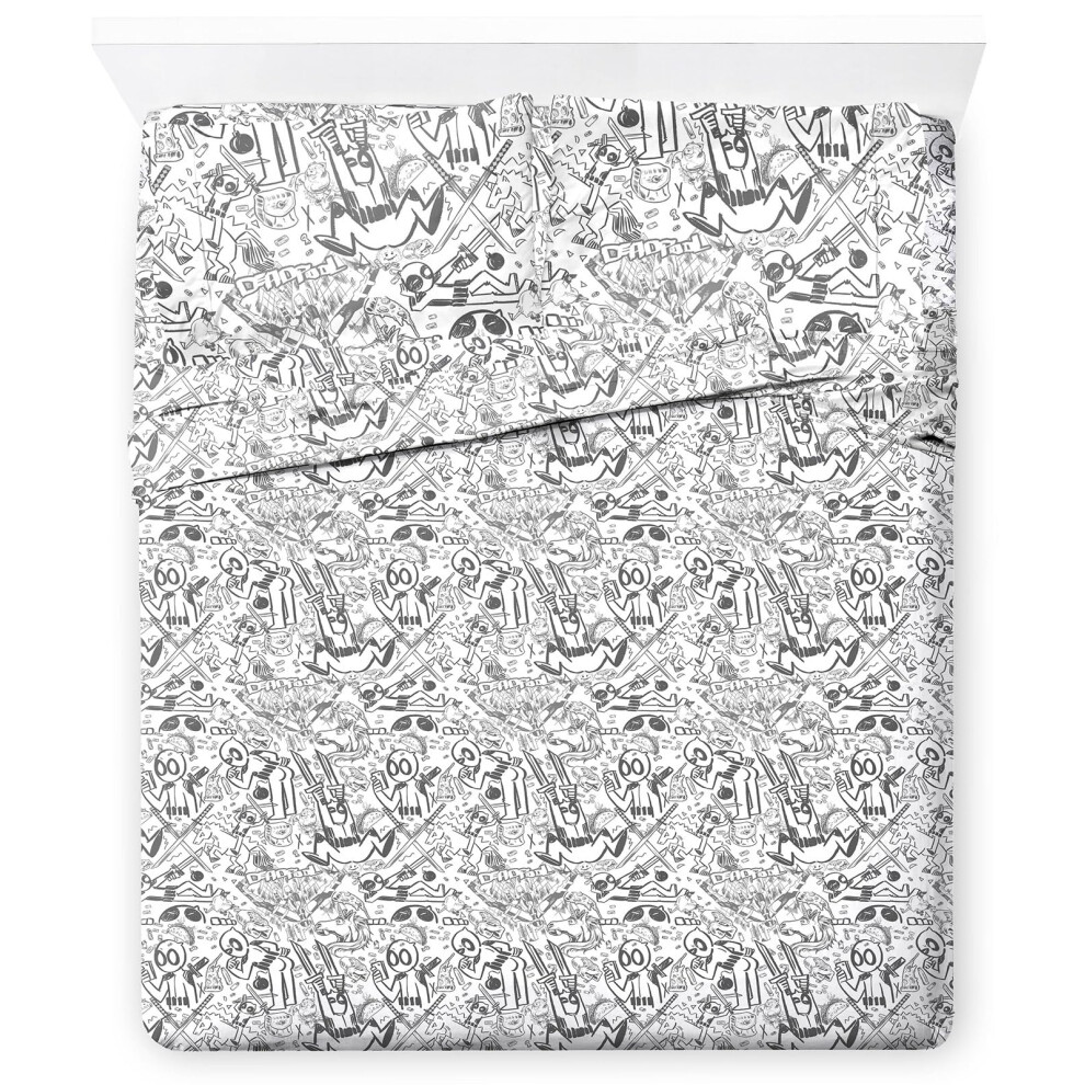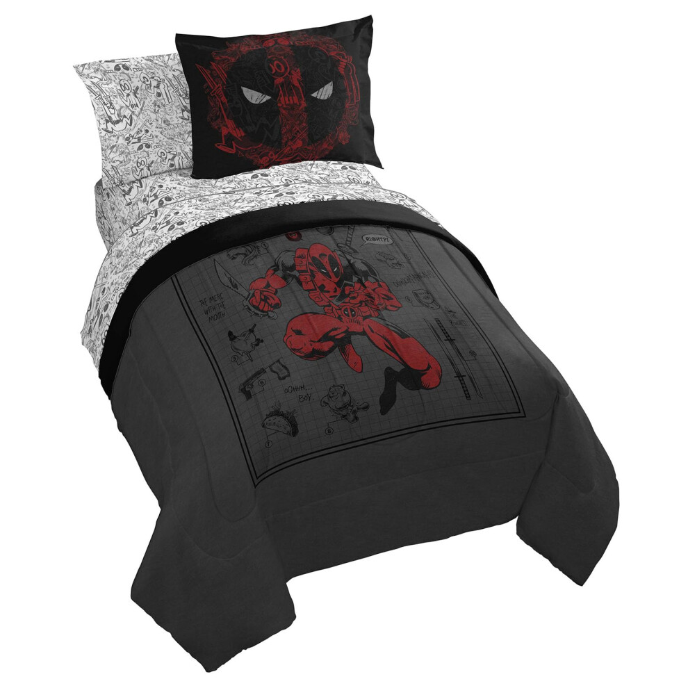 Jay Franco Marvel Deadpool Comic Sketch Queen Size Sheet Set - Super Soft 4 Piece Bedding Set - Microfiber Sheets Includes Reversible Pillow Covers