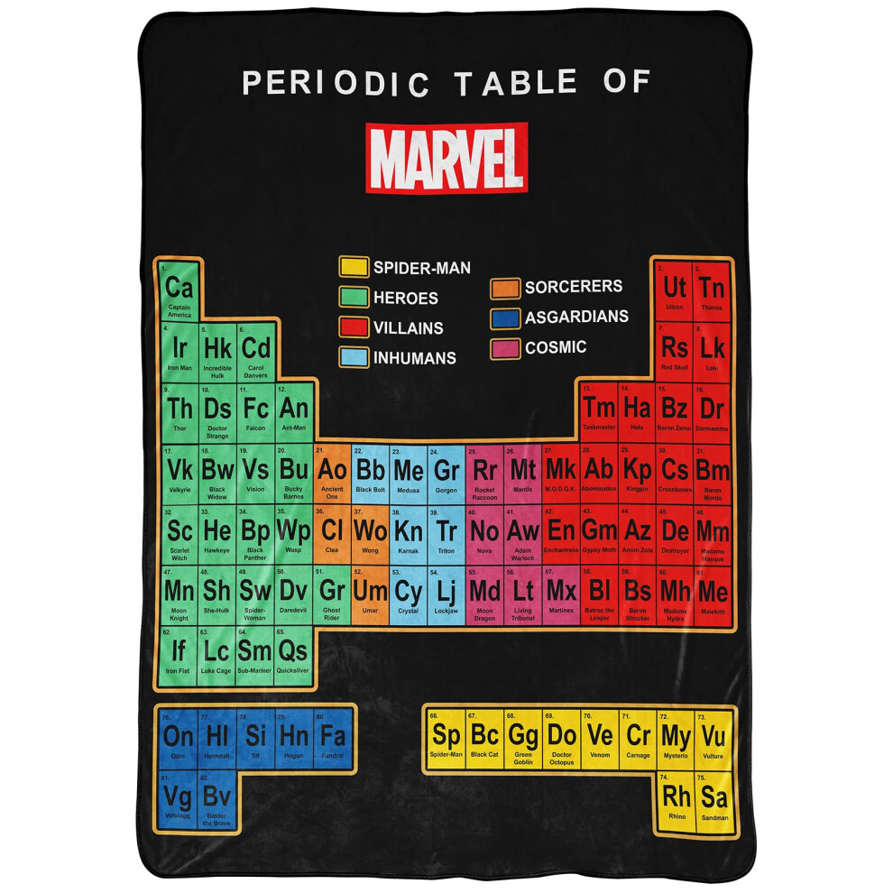 Jay Franco Marvel Periodic Table Blanket - Measures 62 x 90 inches - Fade Resistant Super Soft Fleece Bedding
