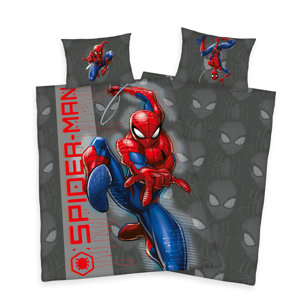 Official Marvel Spiderman Web Slinger Single Duvet Cover PolyCotton Reversible Grey Bedding Set With Matching Pillowcase