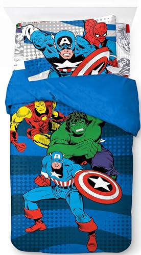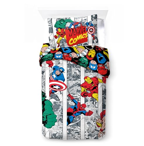 Jay Franco Marvel Comics Avengers 100% Cotton 3 Piece Single Bedding Set - Superhero Collection Includes Duvet Cover, Fitted Sheet & Pillowcase
