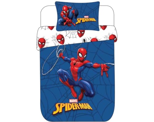 Spidey Bedding Set Junior Size | Duvet Cover 100x140 cm + Pillowcase 40x45 cm, 100% Cotton | Baby Bedlinen Set Perfect for Toddlers | Marvel Spidey Soft Reversible Cot Bedding Set