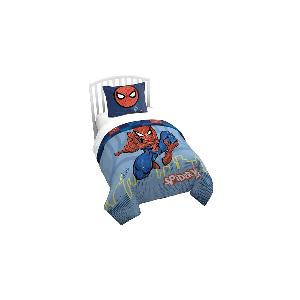 Jay Franco Marvel Spiderman Twin Size Duvet Cover and Sham Set - 2 Piece Super Soft Cozy Blue Kids Bedding