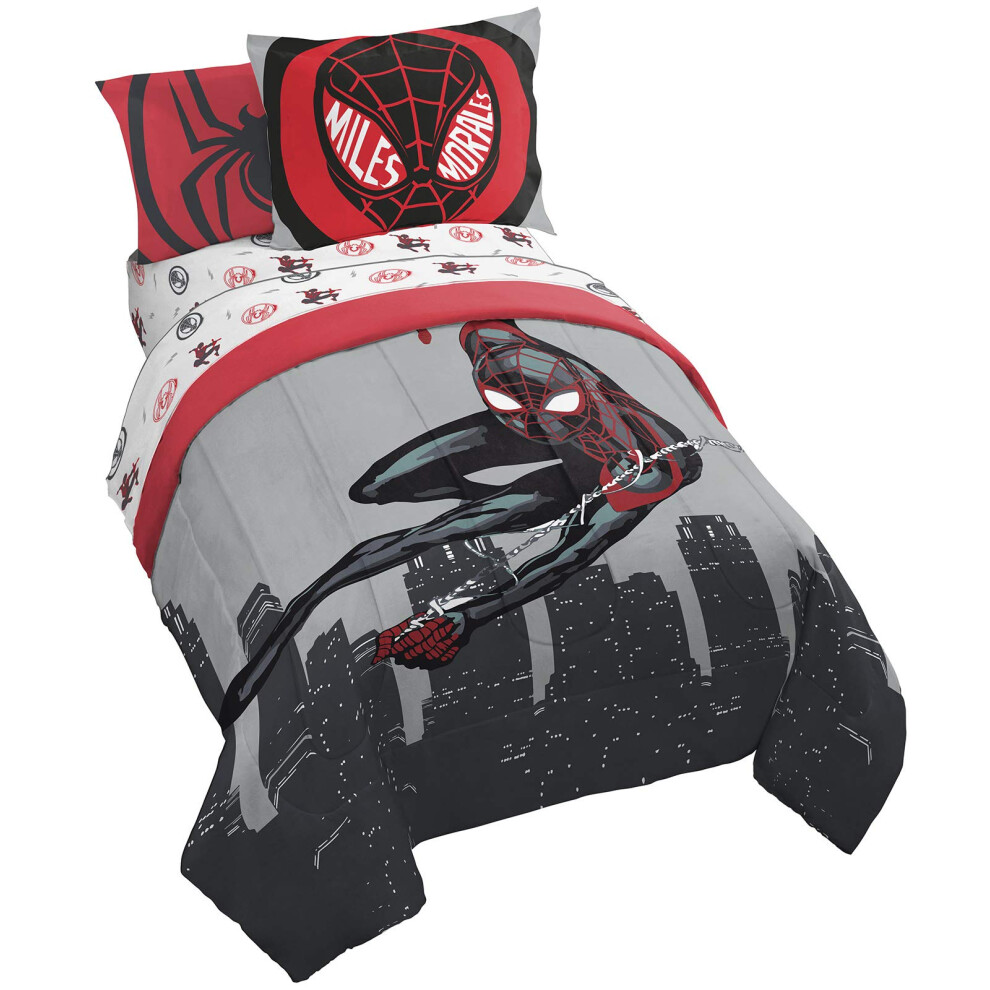Jay Franco Marvel Miles Morales New Kid 7 Piece Full Bed Set - Includes Comforter & Sheet Set Bedding - Super Soft Fade Resistant Microfiber Official