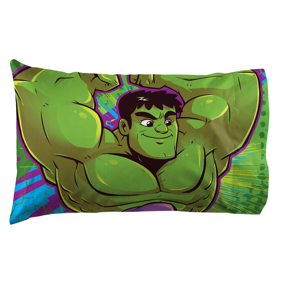 Jay Franco Marvel Super Hero Adventures Hulk Out 1 Pack Pillowcase - Double-Sided Kids Super Soft Bedding Official Marvel Product