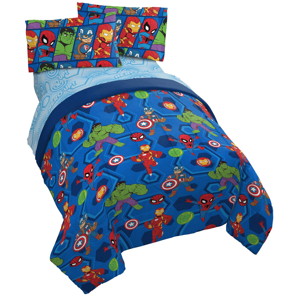 Jay Franco Marvel Super Hero Adventures Hero Together 4 Piece Twin Bed Set - Includes Comforter & Sheet Set Bedding Features The Avengers - Super Soft