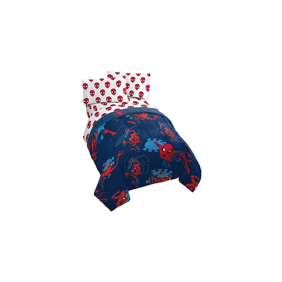 Jay Franco Marvel Spiderman Spidey Daze 5 Piece Full Bed Set - Includes Reversible Comforter & Sheet Set Bedding - Super Soft Fade Resistant Microfibe