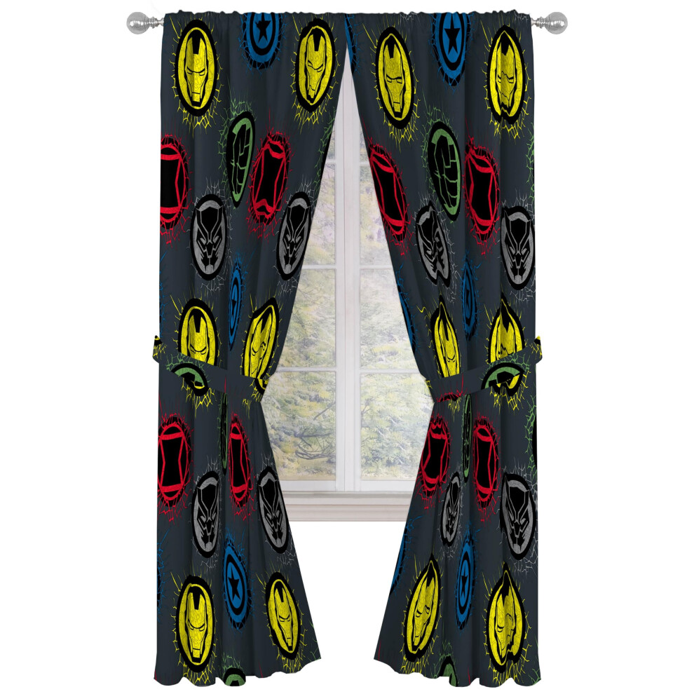 Jay Franco Marvel Avengers Team 63" inch Drapes 4 Piece Set - Beautiful Room D?cor & Easy Set up - Window Curtains Include 2 Panels & 2 Tiebacks