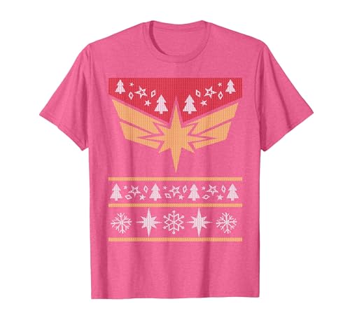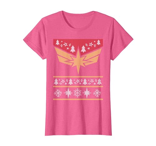 Marvel Captain Marvel Carol Danvers Holiday Sweater T-Shirt, Women, Pink Heather, X-Small