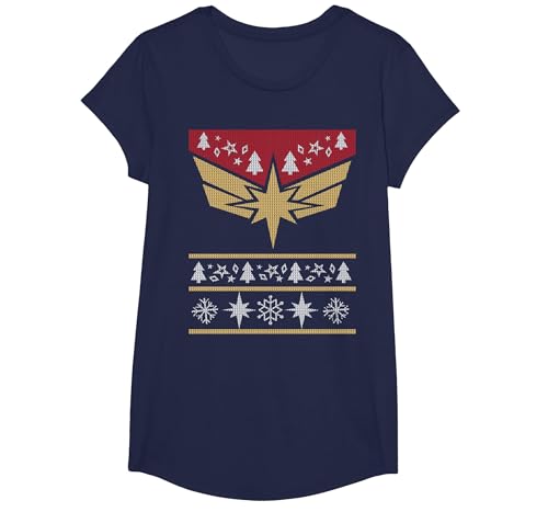 Marvel Captain Marvel Carol Danvers Holiday Sweater T-Shirt, Girls, Navy Blue, Medium