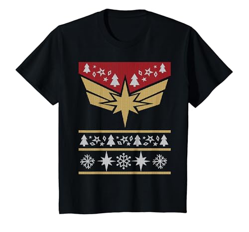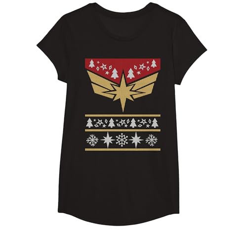 Marvel Captain Marvel Carol Danvers Holiday Sweater T-Shirt, Youth, Black, Medium